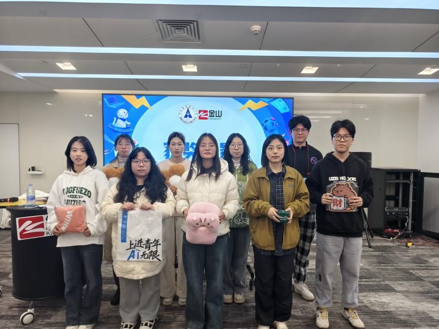活动最后,学校老师和金山讲师为积极参与互动问答的学生颁发了金山卡,学生们根据手中的金山卡数量挑选了礼物,并合影留念。