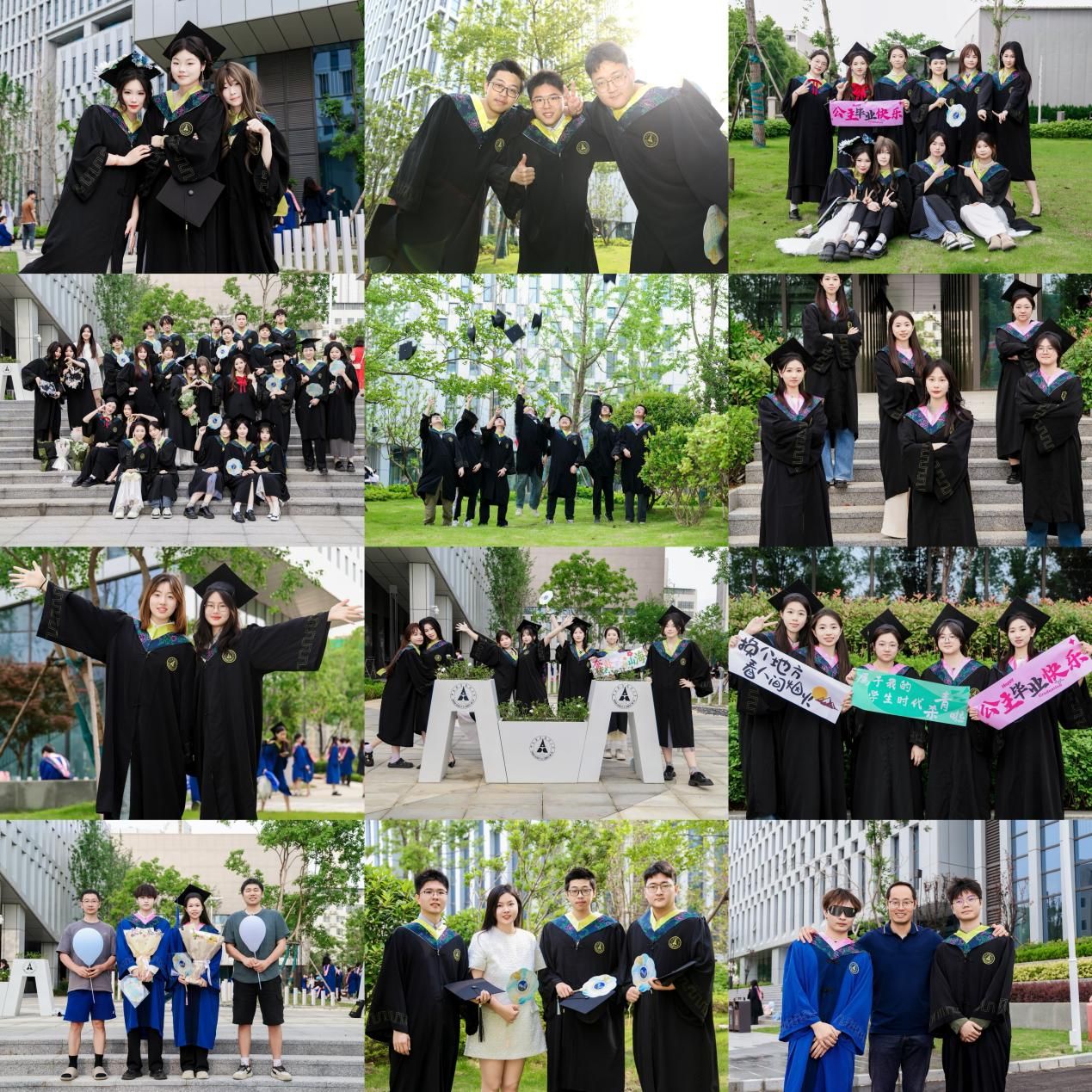仪式感是毕业季最有分量的形式,承载着毕业生对这段学习经历结束的纪念,也承载着毕业生对未来生活的期盼。毕业生们身着整洁的学位服,精神饱满,手持学院制作的拍照道具和小礼品,脸上洋溢着青春活力的笑容。从学院大合照到专业班级小合照、从整齐庄重合影到创意活泼合影,老师和亲友们纷纷入镜,现场的每一个欢愉瞬间都被精心记录,将美好时光定格成永恒的记忆。