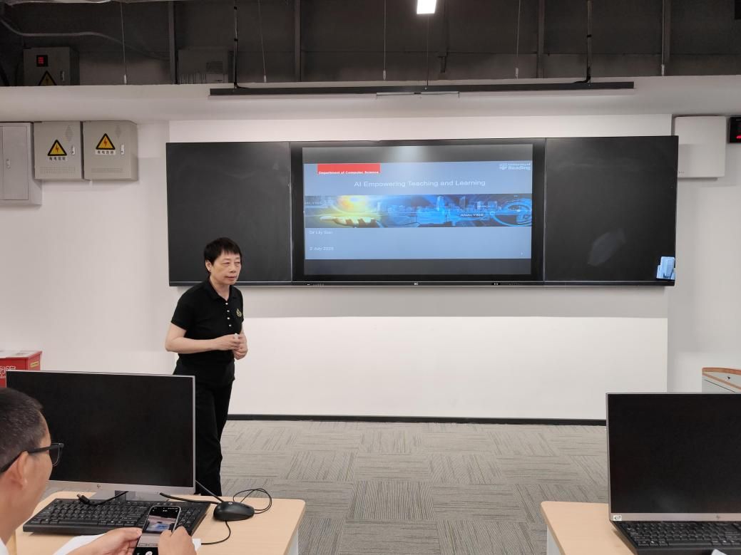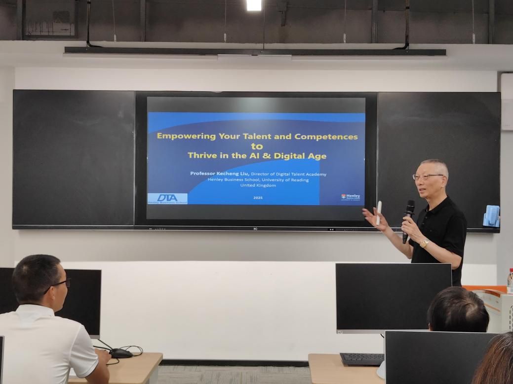 (学生通讯员 李文婧 通讯员 辛斌)为拓宽学院师生的国际化视野,增加与国际学者的交流,学院特邀英国雷丁大学专家一行于7月2日上午在双创楼B栋104教室举办人工智能教育专题系列讲座,探讨人工智能时代的跨学科研究与高等教育人才培养。本次讲座由学院党委副书记石龙主持,英国雷丁大学数字人才学院院长刘科成教授与计算机系主任孙丽丽副教授主讲,学院计算机科学与技术系、信息系和大数据管理系等在校师生近20人参加。