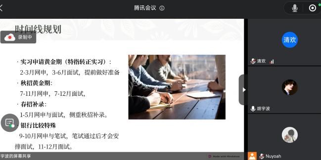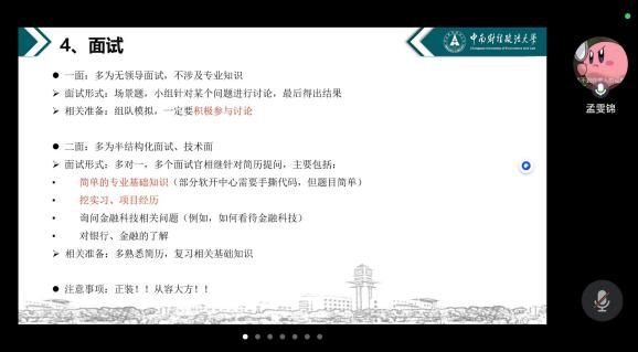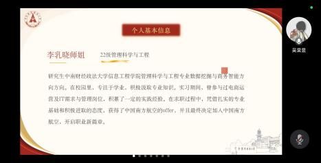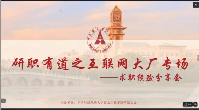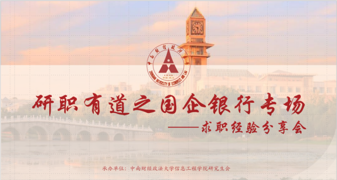 6月23日,开展“研职有道”活动“国企+银行”专场,四位分享嘉宾未来去向分别为中国银行集约运营中心、中国电信解决方案岗、中国南方航空股份有限公司和顺丰科技产品岗。整场分享围绕着国企和银行的求职要点展开,涵盖笔岗位选择、面试准备、目标确定、简历优化等技巧。