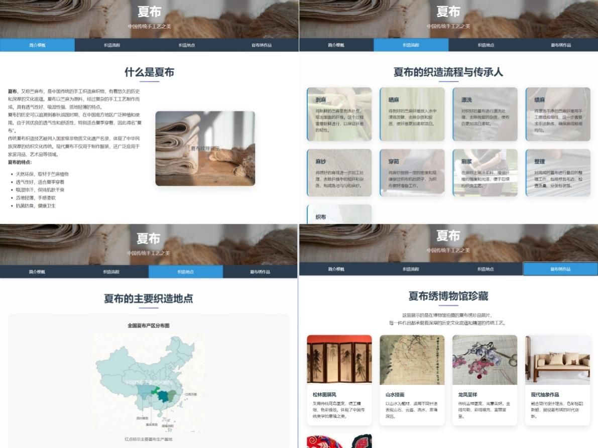 基于一线采集的丰富资料,团队正运用数字技术构建夏布非遗资源平台,对夏布的历史文化、工艺流程与当代应用进行系统整合与可视化呈现,致力实现其“可感知、可互动、可传播”的活态传承。未来,团队将持续推进夏布技艺的数字化存档与创新应用,力争为传统工艺类非遗项目提供可复制、可推广的转型经验,真正实现文化保护与当代生活的有机融合,为乡村振兴与文化自信注入青春智慧。