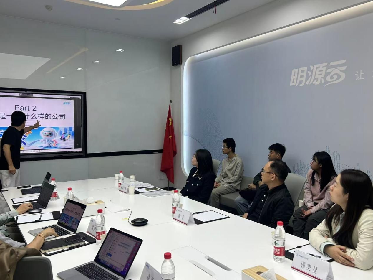 学院一行参观了明源云的办公区域,现场感受IT企业的数字化办公空间与人文关怀深度融合的职场生态。明源云武汉研发中心HR负责人邱伊莎、研发负责人肖铎、高级产品经理毕奇帅分别就公司概况、企业AI实践以及对于AI时代人才的需求和要求进行了介绍。熊平和陈孝丁敬分别对学院的学科建设、人才培养和毕业生概况进行介绍,并就后续产教融合和大学生实习实训等内容与企业负责人进行深入探讨。