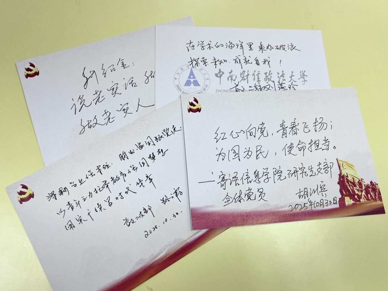 胡江滨书记以《在党的旗帜下成长》为题为研究生讲授专题党课,他从米兰电竞·(中国区)的红色校史出发,讲述了自己成长、入党以及在校工作的历程。围绕党的二十届四中全会精神,胡江滨书记还重点解读了“十五五”规划的时代意义及推进国家统一的重大部署。四位老党员同志分别在寄语卡上写下对青年党员的殷切期望,鼓励同学们接好历史接力棒,为实现中华民族伟大复兴贡献青春力量。