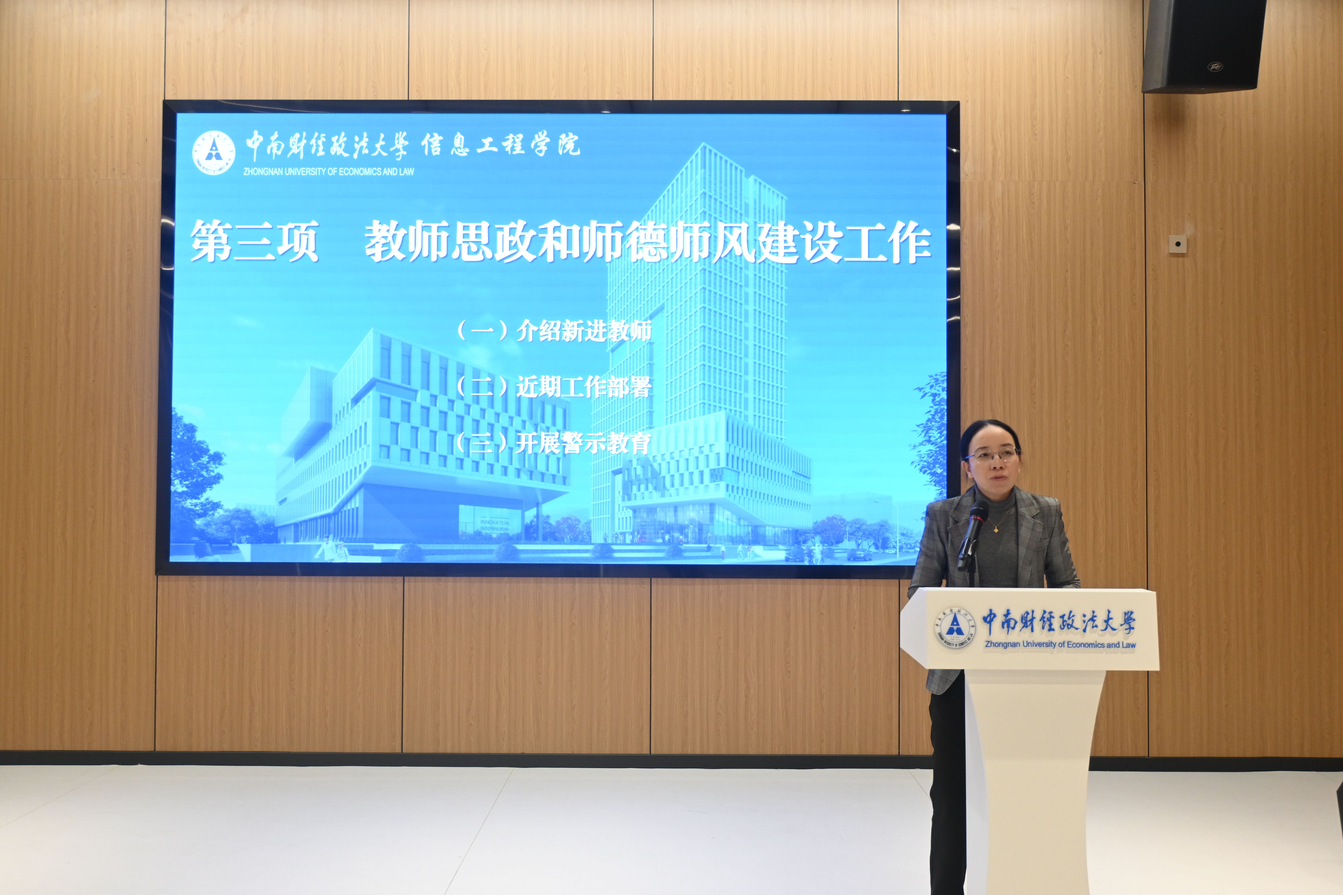王芹向与会人员介绍了新进专任教师,并代表学院全体教职工对新力量的注入表示热烈欢迎。