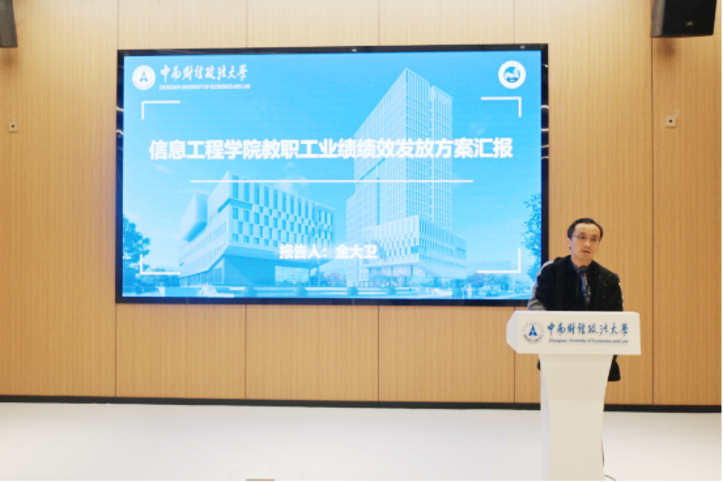 院长金大卫聚焦2025年业绩绩效发放方案向与会人员做政策宣讲。他强调,年终绩效分配作为学校高质量发展、院系治理改革、人事全生命周期管理及薪酬体制改革的闭环关键,要突出系统性、激励性与导向性,为学院高质量发展提供制度保障。一是强化绩效意识,以贡献论实绩,主动把绩效要求转化为推动工作的内生动力。二是强化自我约束,以自律促规范,形成“自我加压、主动作为”的良好工作作风。三是强化对标意识,促进提质增效,确保各项工作“干有方向、评有依据、考有标准”。