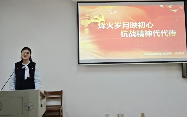 开班仪式结束后,主讲嘉宾朱子琳以“烽火岁月映初心,抗战精神代代传”为主题为青马班、青年学习社开展第一次理论授课。她围绕伟大抗战精神,以毛泽东、赵一曼、狼牙山五壮士为例,诠释了“天下兴亡、匹夫有责”的爱国情怀,展现了“视死如归、宁死不屈”的民族气节与“不畏强暴、血战到底”的英雄气概。朱子琳在授课最后表示希望作为新时代青年的我们要积极传承、弘扬伟大抗战精神,把个人理想追求融入党和国家的事业之中,努力奋斗,为实现中华民族伟大复兴的中国梦贡献自己的力量。
