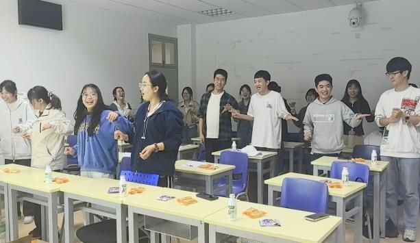 暖场环节中,“抓手指”游戏率先点燃现场气氛。随着指令“3”响起,同学们迅速完成“左手抓、右手躲”的动作。轻松有趣的互动有效缓解了初识时的拘谨,为后续活动营造出融洽的氛围。