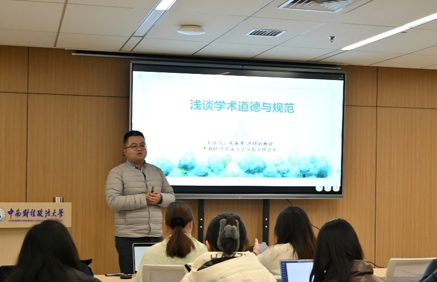 (通讯员 王毅 学生通讯员 许宇航)为深入学习贯彻科研诚信精神,引导研究生恪守学术规范,11月27日上午,以“科创守初心,笃行正学风”为主题的“科学道德与学风建设”教育宣讲会在双创楼A栋913会议室顺利举行。本次活动特邀吴海涛副教授担任主讲,面向全院研究生开展学术道德专题讲座。