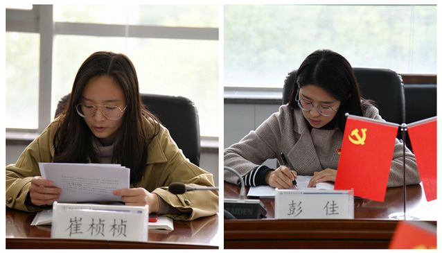 新闻学院本科生第二党支部党员代表陈华靖、张睿婕同学分别发言。陈华靖同志表示,党的二十大报告中提出的“加强全媒体传播体系建设,塑造主流舆论新格局。健全网络综合治理体系,推动形成良好网络生态”令自己印象深刻,作为新闻学院的学生,将认真学习领会、准确把握二十大报告的精神实质,用理论武装头脑,努力增强“脚力、眼力、脑力、笔力”,当好“传声筒”,讲好中国故事。张睿婕同志表示,自己的家乡是浙江嘉兴,从嘉兴南湖到中南大晓南湖,从红船精神到中南大精神,深刻感悟到作为新时代青年大学生使命光荣、责任在肩。“我想用手中的笔,书写当代中国故事,为中华民族伟大复兴贡献力量。“她说道。
