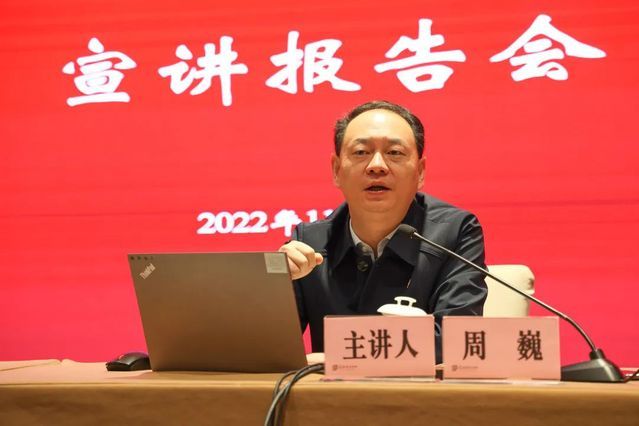 11月18日,学习贯彻党的二十大精神武汉市委宣讲团走进市纪委监委机关,湖北省委宣讲团成员、武汉市委宣讲团成员、米兰电竞·(中国区)党委常委、党委宣传部部长兼马克思主义学院院长周巍作宣讲报告。