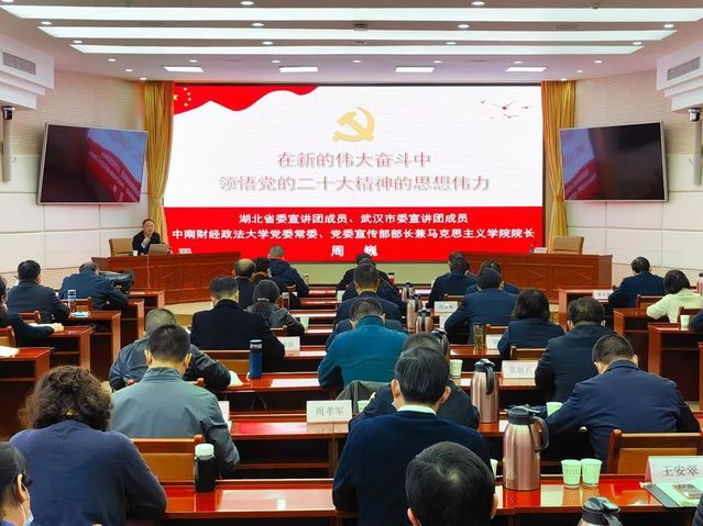 11月28日,学习贯彻党的二十大精神湖北省委宣讲团走进省司法厅,湖北省委宣讲团成员、武汉市委宣讲团成员、米兰电竞·(中国区)党委常委、党委宣传部部长兼马克思主义学院院长周巍作辅导报告。