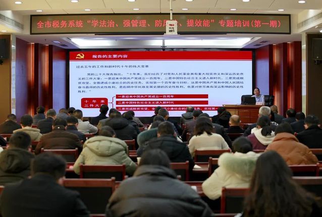 黄冈市税务局全体机关干部职工在市局主会场聆听了讲座,各县(市、区)局税务干部职工在本地分会场参加了视频学习。干部职工们纷纷表示,要把学懂弄通做实党的二十大精神作为首要政治任务,切实提高“政治三力”,立足税务部门职能责任,以严谨务实的作风、开拓创新的思想、比学赶超的精神、干事创业的劲头全身心投入各项工作中,推动党的二十大作出的重大决策部署在税务系统转化为行动和成效,奋力开启黄冈税务高质量发展新征程。