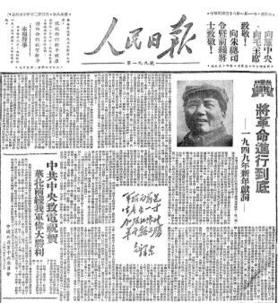 1949年1月1日,《人民日报》在第1版刊发毛泽东撰写的一九四九年新年献词《将革命进行到底》