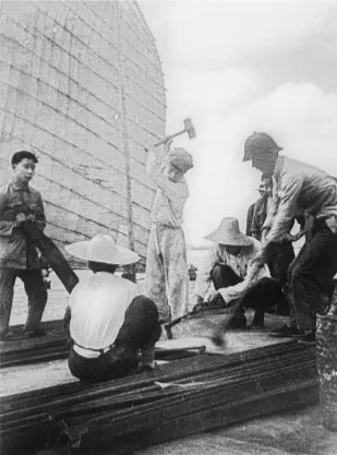 人民解放军进入汉口后,工友们帮助解放军修理渡江船只。长江日报记者何晓刚翻拍