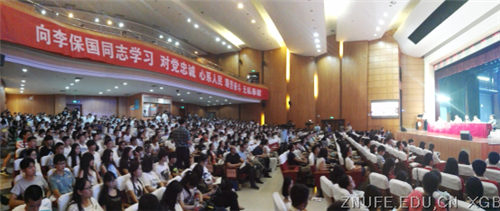 (通讯员 张雨舟)为发挥先进教师典型的先锋模范作用,引导广大教师积极落实立德树人根本任务,6月17日下午,由中组部、中宣部、教育部、河北省委联合举办的李保国同志先进事迹报告会在华中农业大学举行,在鄂部分高校师生代表1000余人参加了报告会,报告会由华中农业大党委副书记唐峻主持。我校40名学生及青年教师代表聆听了李保国同志的感人事迹。