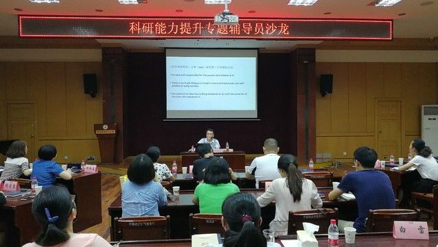 (通讯员 唐波涛 赵晓 张雨舟)6月9日下午,为进一步加强我校辅导员队伍的专业化职业化建设,全面提升辅导员们的科研能力,我校学生工作部在文潭楼四楼报告厅组织开展了2017年科研能力提升专题辅导员沙龙。本次沙龙邀请了马克思主义学院的何西瑞副教授作为培训专家,报名采取了限量自愿参与的方式,共16个学院的25位专职辅导员参加了此次沙龙。