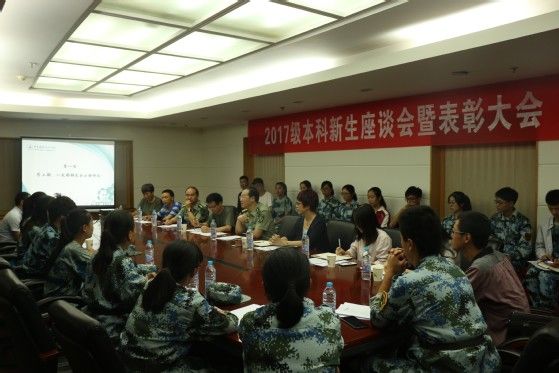 新闻网讯(记者 崔桢桢 通讯员 张振宇)9月21日上午,2017级本科新生座谈会暨表彰大会在首义校区中南楼五楼会议室举行。学工部、人武部部长余小朋,学工部、人武部副部长朱虹,学工部副部长葛明,校团委副书记范献龙及学工部相关负责老师到场参会。会议由葛明主持。