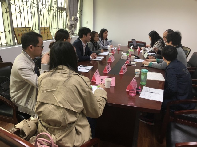 首先,葛明对湖北师范大学考察团队表示了热烈地欢迎,简要介绍了我校心理中心专职人员分工情况,希望通过本次交流,推动双方心理健康教育事业的共同发展。刘波介绍了湖北师范大学心理中心的基本情况及本次考察交流的目的和意义,并对我校咨询中心创立以来取得的工作成绩给予了高度评价,希望通过交流,促进学校心理中心更好地发展。随后,杨子云介绍了我校心理健康教育咨询中心的发展历程、工作机制、队伍建设、服务管理及特色工作。双方还就心理咨询及危机干预、心理健康教育课程设置、心理健康专兼职队伍建设、心理健康活动、新媒体建设等方面进行了深入的交流和探讨。