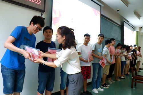 在全体起立,共温入党誓词后,众毕业生逐一走向讲台,由刘书记送上学校精心准备的毕业纪念包。时间倏忽即逝,昨日的第一堂党课仿佛还在眼前,转眼间即是最后一次党课,为整个大学四年划上了圆满句号。