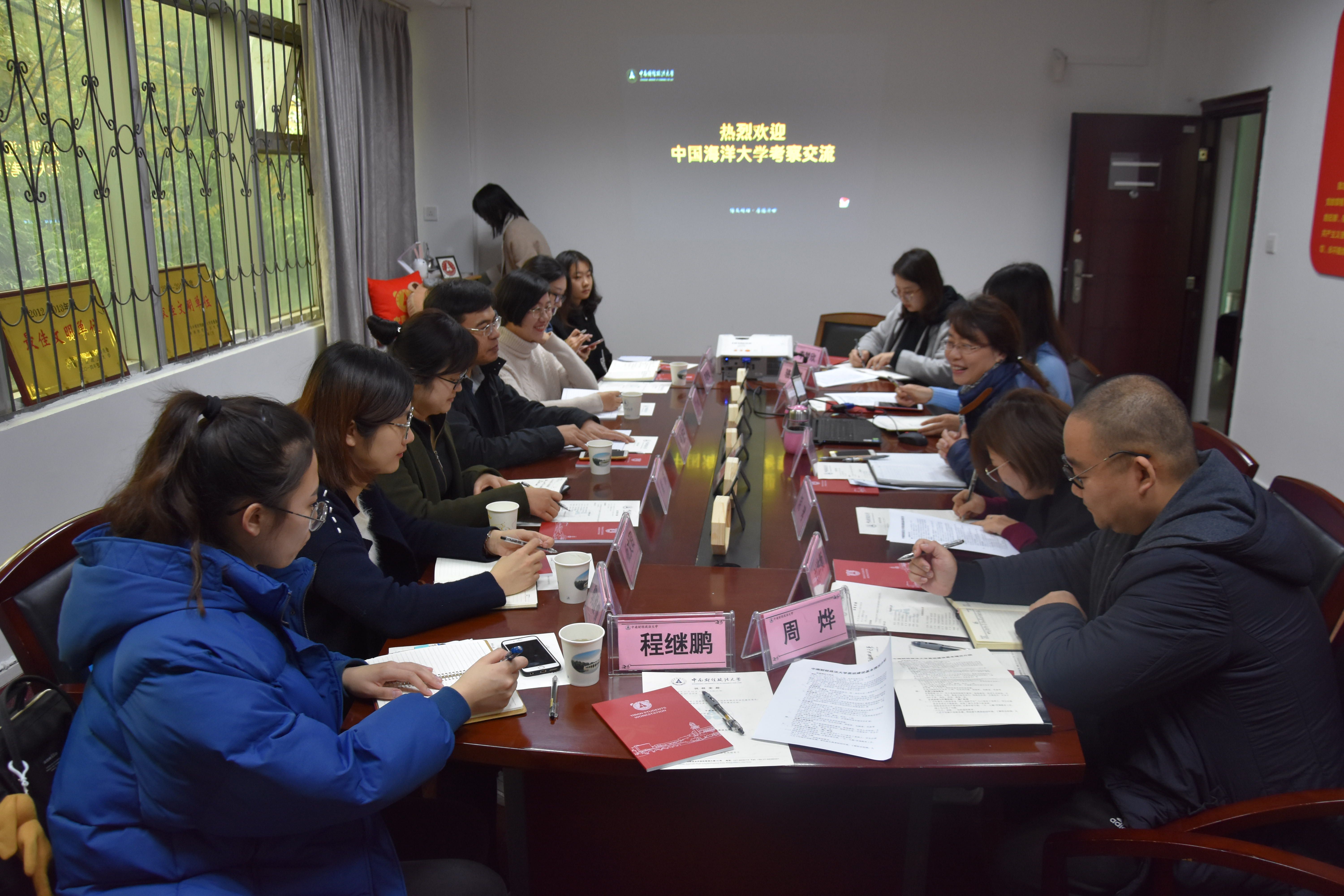 (通讯员 李梦欣)11月16日上午,中国海洋大学党委学生工作部副部长黄立田、党委学生工作部秘书王小峰、水产学院辅导员杨文昭、数学科学学院辅导员崔琪、工程学院辅导员李碧依与易班学生工作站成员郭雅倩、张琼子一行来我校交流易班建设的经验,共同探讨易班发展的建设性方案。会议由学工部副部长吕宗瑛主持,中韩新媒体学院、统计与数学学院、信息与安全工程学院辅导员以及易班相关指导老师和学生骨干参与了会议。