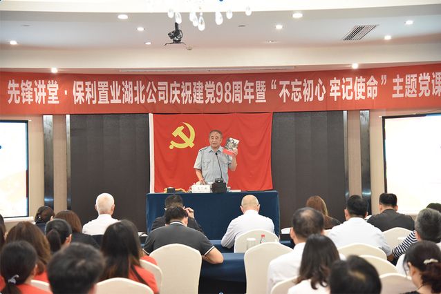 6月27日下午,工商管理学院学生党员代表在肖宏伟老师的带领下参加保利置业湖北公司党委开展的庆祝中国共产党成立98周年暨“不忘初心、牢记使命”学习教育主题党课活动之“先锋讲堂”,他们与保利集团湖北分公司党员共同聆听了原武汉军区空军宣传部部长、现空军老战士报告团团长、“中国好人”毛兰成同志讲授的党课,并共同参观企业、畅谈初心。
