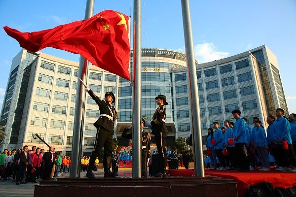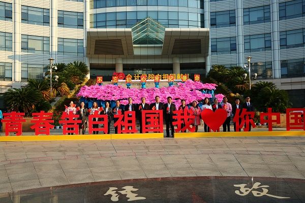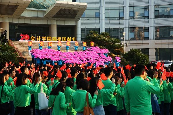 我叫江剑,我来自安徽,我用黄山的苍松向祖国告白:我爱你中国;我叫次央,我来自西藏,我用洁白的哈达向祖国告白:我爱你中国;我叫吕玉洁,我来自新疆,我用石榴籽般的团结向祖国告白:我爱你中国;我叫庄峻伟,我来自香港,我用紫荆花的璀璨向祖国告白:我爱你中国;我叫黄瀚升,我来自台湾,我用日月潭的清波向祖国告白:我爱你中国!……我们是新时代的青年,我们将“不忘初心、牢记使命”,勇于担当,砥砺前行,奋进新时代,共筑中国梦!我们,我们,我们用青春向祖国告白:我爱你,中国!!!来自全国23个省,4个直辖市,5个自治区和2个特别行政区的会计学院学生代表,在鲜红的国旗下,用青春向祖国告白:我爱你中国。与此同时,站在中原楼台阶的122名同学手持鲜艳的花朵,次第绽放,盛放的花朵逐渐组成鲜花铺满的中国地图,光彩耀眼。