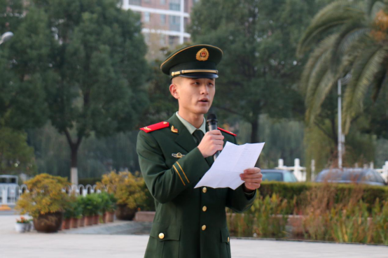 升旗仪式结束后,法1804班陈文静同学作为入党积极分子代表,为在场同学带来演讲《新时代大学生的家国情怀》。她追溯84年前的一二·九运动,讲述北平七千多名大学生不服帝国主义的压迫,进行大规模的学生抗日救国运动的故事。陈文静同学表示,是一代代青年人的努力让中国摆脱压迫,打破屈辱,照亮了民族复兴的前路。随着中国的发展,新一代青年人面对的已不再是腥风血雨、家国飘摇,而是如何才能让中国在新的世界舞台上屹立不倒。她提出当代大学生坚定理想信念,培养爱国情怀需要从以下三个方面做起:第一,要全面了解我国现状,保持思想先进性和纯洁性;第二,要坚定党的领导,理智应对挑战;第三,要努力学好专业知识,积极投身爱国实践。随后陈文静同学呼吁在场同学以一二·九运动为契机,检验思想高度与实践能力,树立历史使命感与民族责任感,在今后的学习生活中,继承和发扬爱国精神,为实现“两个一百年”奋斗目标和中华民族伟大复兴不断奋斗。