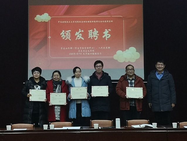 陈亚奇为兼职思政课初任教师导师颁发聘书。曾宪洪、刘强、荣枢、徐春艳等4名马克思主义学院专业课教师被聘任为《形势与政策》《毛泽东思想和中国特色社会主义理论体系概论》《马克思主义基本原理概论》《思想道德修养与法律基础》课程导师,聘期一学期,通过一对一,指导初任教师提高业务能力,明确教学要求。