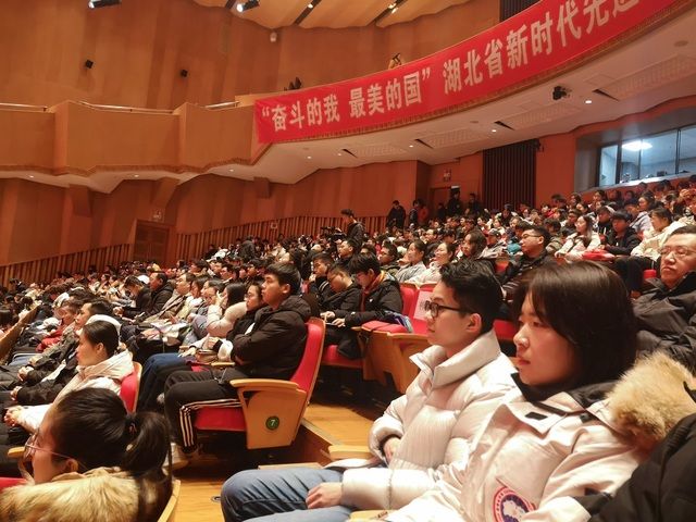 报告过程中,在场的师生被先进人物的奋斗精神和心路历程深深打动,不断爆发出热烈的掌声。最后,湖北省委高校工委副书记、省教育厅党组成员孔祥恩作总结讲话,号召在场师生向先进学习,在大有可为的时代积极奋斗。