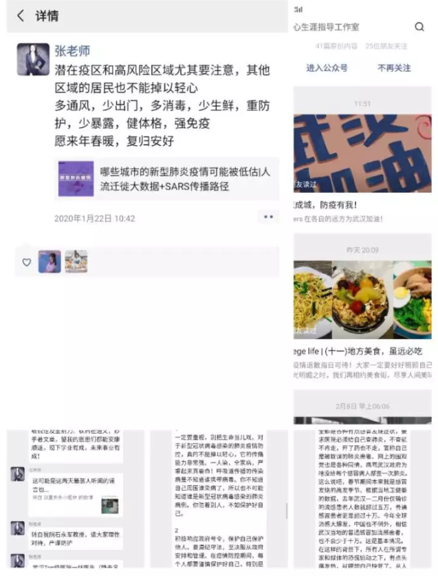 那段时间无论线上线下都弥漫着紧张气氛,最直观地便是朋友圈里弥漫着的惊慌、怀疑、低迷。已在老家被隔离的我,受条件所致将工作重点从线下转向线上,努力保持正常的工作节奏。面对武汉作为疫情暴发前线、病毒潜伏的现状,我必须用实际行动让在校学生感受到来自老师的牵挂与陪伴。