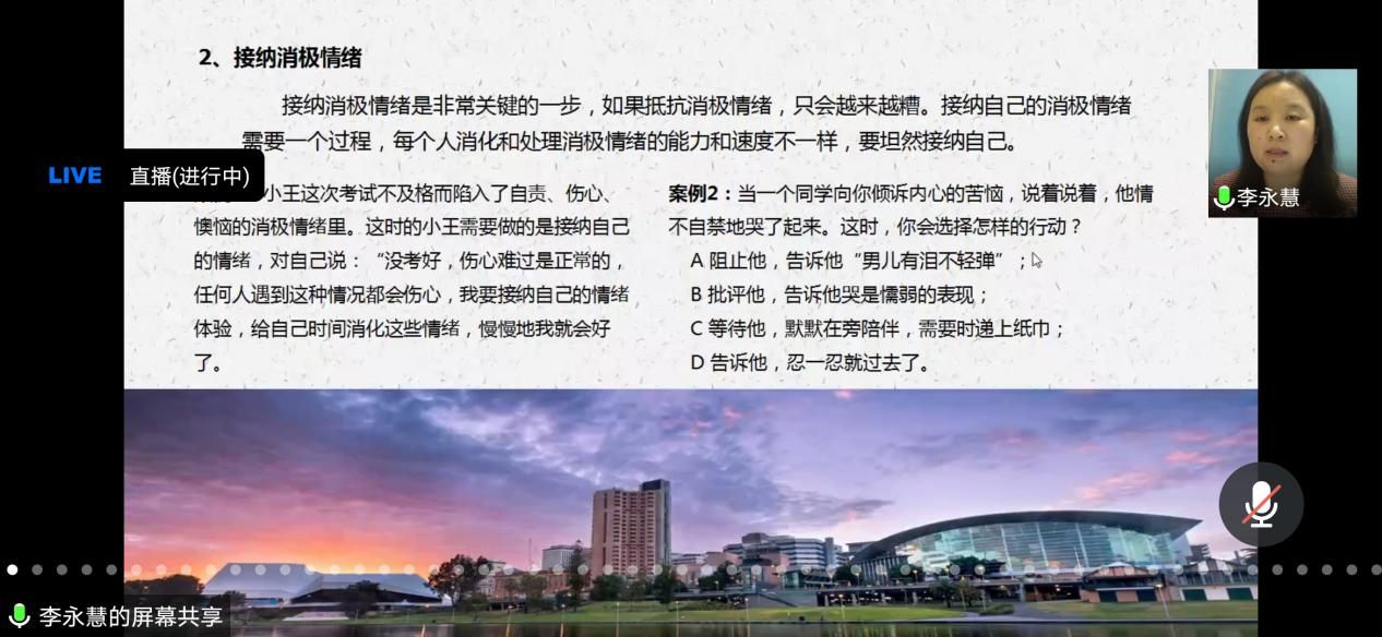 在知识讲授环节结束后,李永慧与心理委员进行线上互动,逐一回答了心理委员提出的各种在日常工作实践中面临的问题,包括如何更好地关注有心理困惑的同学、如何运用积极心理学知识帮助同学应对焦虑情绪、如何更好地动员有需求的同学寻求专业心理资源的帮助、如何在疫情期间与家人处理好关系等议题。讲座结束后,心理委员们纷纷表示有很大收获,更有信心用积极心理学的方法开展班级心理健康服务工作。