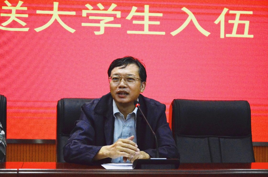 覃红受校党委书记栾永玉,校党委副书记、校长杨灿明委托,向参军入伍的18名中南大学生表示热烈的祝贺。他表示,同学们能够响应党和国家的号召积极入伍,一方面体现了同学们综合素质,特别是身体条件的优越性,另一方面,“一人当兵,全家光荣”,入伍不仅是家庭、父母的荣耀,更是我们中南大全体师生的荣耀,这也离不开学校积极响应国家号召,鼓励大学生参军入伍的宣传、教育、动员、培养。