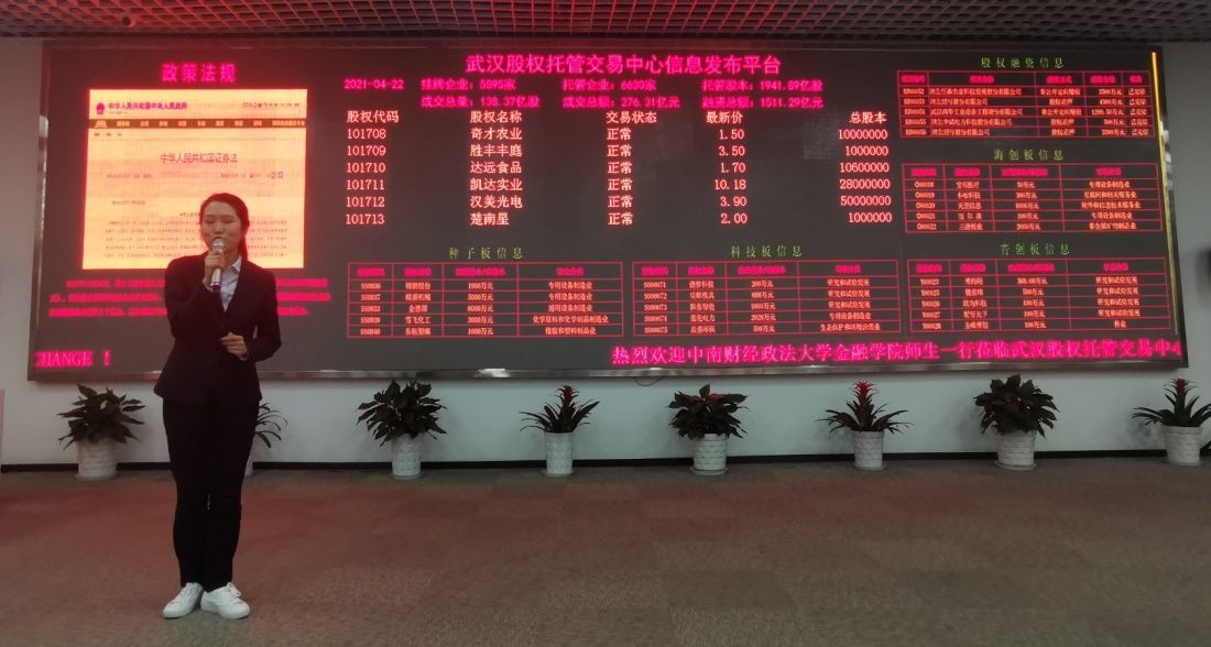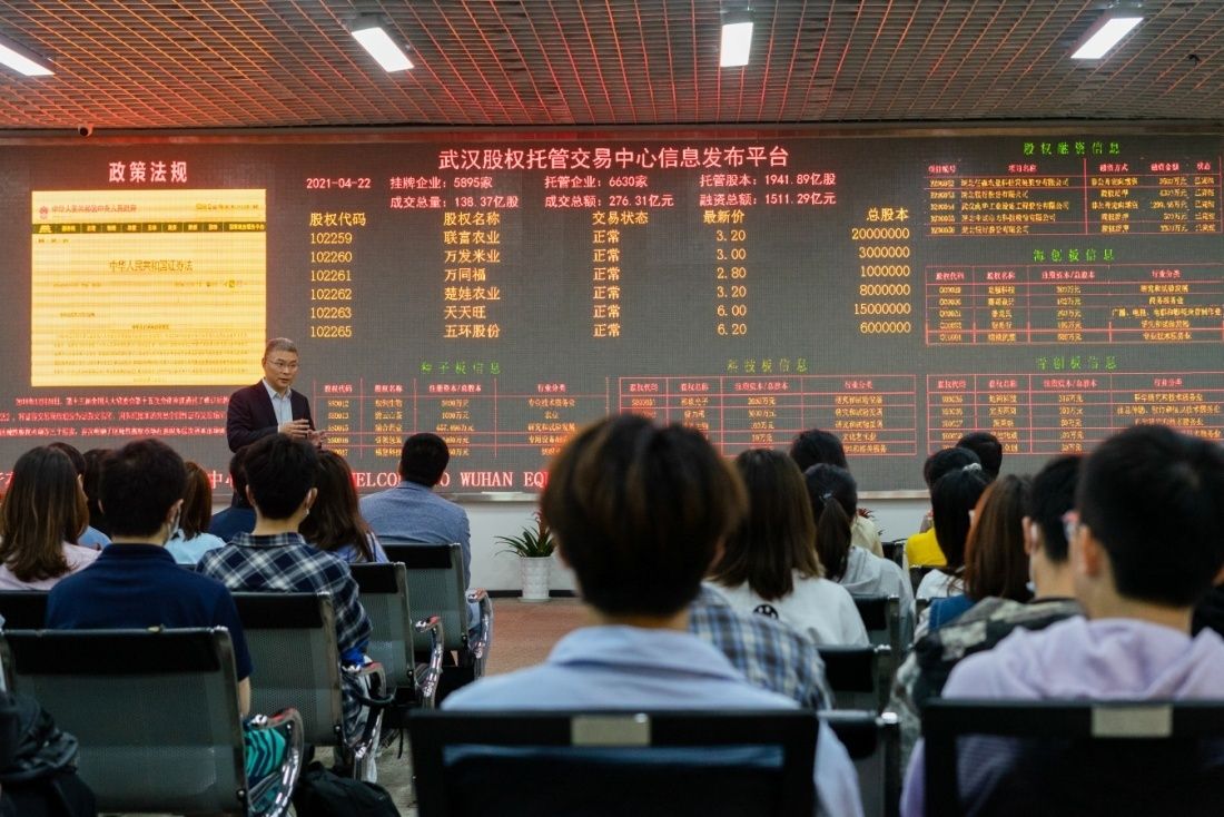 (学生记者 马雯菁 陈璐)为引导学生聚焦行业发展,走近业务实践,开拓学术视野,金融学院积极探索三全育人新模式,持续开展校企联合“同育课堂”。4月23日下午,青马班、20级学生代表45人走进光谷资本大厦,实地走访武汉股权托管交易中心,通过走访参观、聆听讲座、交流答疑等方式,近距离接触了生动鲜活的武汉金融发展史,收获了金融学习的全新视角。