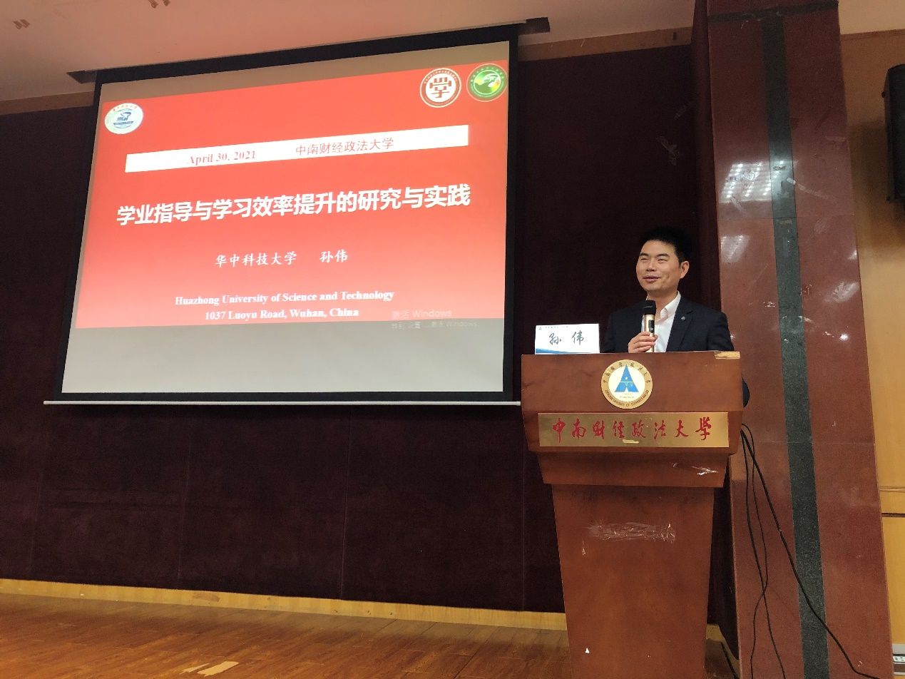 孙伟从学业指导发展现状及发展趋势、学业指导理论研究与实践探索、学习奥秘与学习效率提升方法、学业发展工作思考及推进建议4个方面展开讲授。他从学业指导的概念引入,随后向大家介绍了国内外学业指导工作发展历程和国外区域性学业指导机构、指导理论、指导模式,以及国内外学业指导发展趋势。他以华中科技大学前期开展的学习相关的问卷调查结果为依据,剖析了大学生当前面的学习问题。
