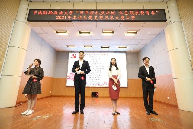 在决赛第一项各党支部述职环节中,各支部在加强支部建设、入党积极分子培养、党员教育管理、党建活力创新等方面的实践探索和有效经验让人印象深刻。工商管理学院本科生党总支2017级党支部展示了该支部“红色家书”、“春日经典诵读”等特色党日活动;法学院本科生党总支第一党支部通过“青年研习社”、“四史学习”等多种方式让党员教育“活”起来;外国语学院本科生党支部通过“专题党课和学生微党课”、“网络学习教育”、“实践锻炼”等方式积极开展思想政治教育;国旗护卫队学生党支部开展6次“贯彻支部引领发展,讲好红旗文化故事”系列活动、2002年起累计开展700余次升旗任务;会计学院本科2018级党支部积极开展主题升旗仪式、点赞武汉致敬英雄等教育活动;刑事司法学院本科生2018级党支部通过发现、宣传和推广身边典型人物、典型事迹等方式引导党员积极凝聚、服务青年学生;、工商管理学院本科生党总支2018级党支部通过“读党史、讲党课、行志愿”读、讲、行一体推动支部教育工作走深走实;、哲学院本科生第二党支部推进支部规范建设、创新支部活动经历,引导支部党员“走出课堂,走向实践”;公共管理学院本科生2018级党支部开展党员下沉、深入群众、服务群众系列活动;统计与数学学院2018级本科生党支部创新党日活动形式,开展“《觉醒年代》讨论会”、“谈心谈话”等多种形式。