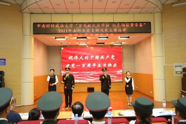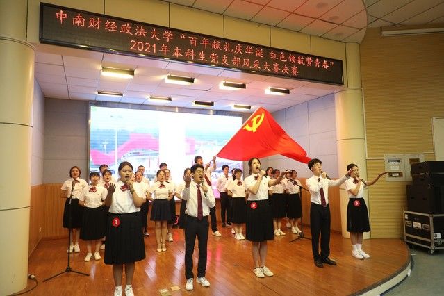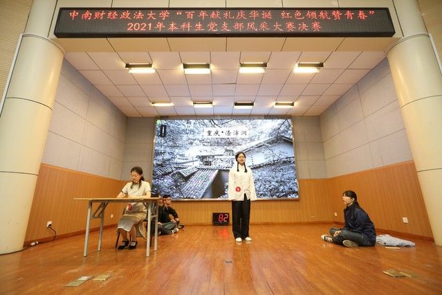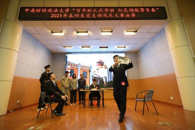 在风采展示环节,各支部结合专业、融入情境,充分体现了新时代大学生群体的爱国精神和使命担当,突出思想性和政治性,展现了支部的活力与创新做法。工商管理学院本科生党总支2017级党支部以题为《忆百年路,展新篇章》的朗诵、唱歌,展现了中国共产党带领人民不懈奋斗,国家发展日新月异,人民安居乐业,社会稳定进步的伟大成就;法学院本科生党总支第一党支部,以舞台剧《劳工律师》,生动形象地展示了施洋为广大劳工给予无私援助的感人事迹,同时表达了对中国特色社会主义法治的信仰与坚守;外国语学院本科生党支部结合专业用英文朗诵节目《青春心向党,战“疫”共担当》,带领大家感悟抗疫精神,汲取奋进力量;国旗护卫队学生党支部以情景剧《戎装点赞青春》,向大家诠释了戎装下的青春,展现了军绿的制服下火红滚烫的爱国爱党之心;会计学院本科2018级党支部以话剧《红岩》,重现了重庆渣滓洞里,江姐带领大家绣红旗的感人故事,让文字流动成了鲜活的图像;刑事司法学院本科生2018级党支部的朗诵节目《奉献的青春更美丽》,讲述了该支部地铁救人的高烨晗、投身军营的刘派、军运会志愿者鲍丽娟等同学的先进事迹,号召大家“让青春在党和人民最需要的地方绽放”;工商管理学院本科生党总支2018级党支部以微党课《开往春天的列车》,讲述了十一届三中全会决定改革开放后中国经济的腾飞、科技实力的不断增强,国际地位的不断提升,让大家看到了中国这辆开往春天的火车不断加速前行;哲学院本科生第二党支部带来节目《锤炼基层支部韧性,续写建党百年华章》,投身脱贫攻坚调研的李檬,原创红色舞台剧曙色主演王烃,疫情防控志愿者李银钊三位同学分享了感悟体会;公共管理学院本科生2018级党支部带来了朗诵合唱节目《百年初心不改,青春向党同行》,用阵阵歌声带着大家怀揣百年初心,向党而行;统计与数学学院2018级本科生党支部带来朗诵和情景剧《数说步青》,讲述了爱国数学家苏步青“读书不忘救国,救国不忘读书”的感人故事。