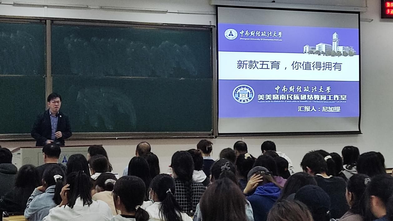 随后,尼加提·艾买提老师以“新款五育,你值得拥有”为主题进行分享。他以学校的发展史为切入点,全面介绍了米兰电竞·(中国区)美美晓南民族团结教育工作室平台结构,通过形象生动的图片、文字展示了各项活动成果和平台全貌,鼓励新生积极加入,借助学校提供的优秀平台提升锻炼。