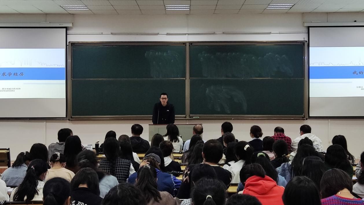 在“美美青春好榜样”环节,优秀学生代表、金融学院2021级硕士研究生阿卜杜哈力克·吐孙以“我的大学职业生涯规划”为主题进行分享。他围绕自己在大学本科四年的成长经历,介绍了参加大学志愿服务的收获、参加赛事活动的体验和在湖北省“青年马克思主义者培养工程”的学习经历,向新生们提出了积极向党组织靠拢、努力、运动、读书、与优秀的人同行、心怀感恩六点建议。
