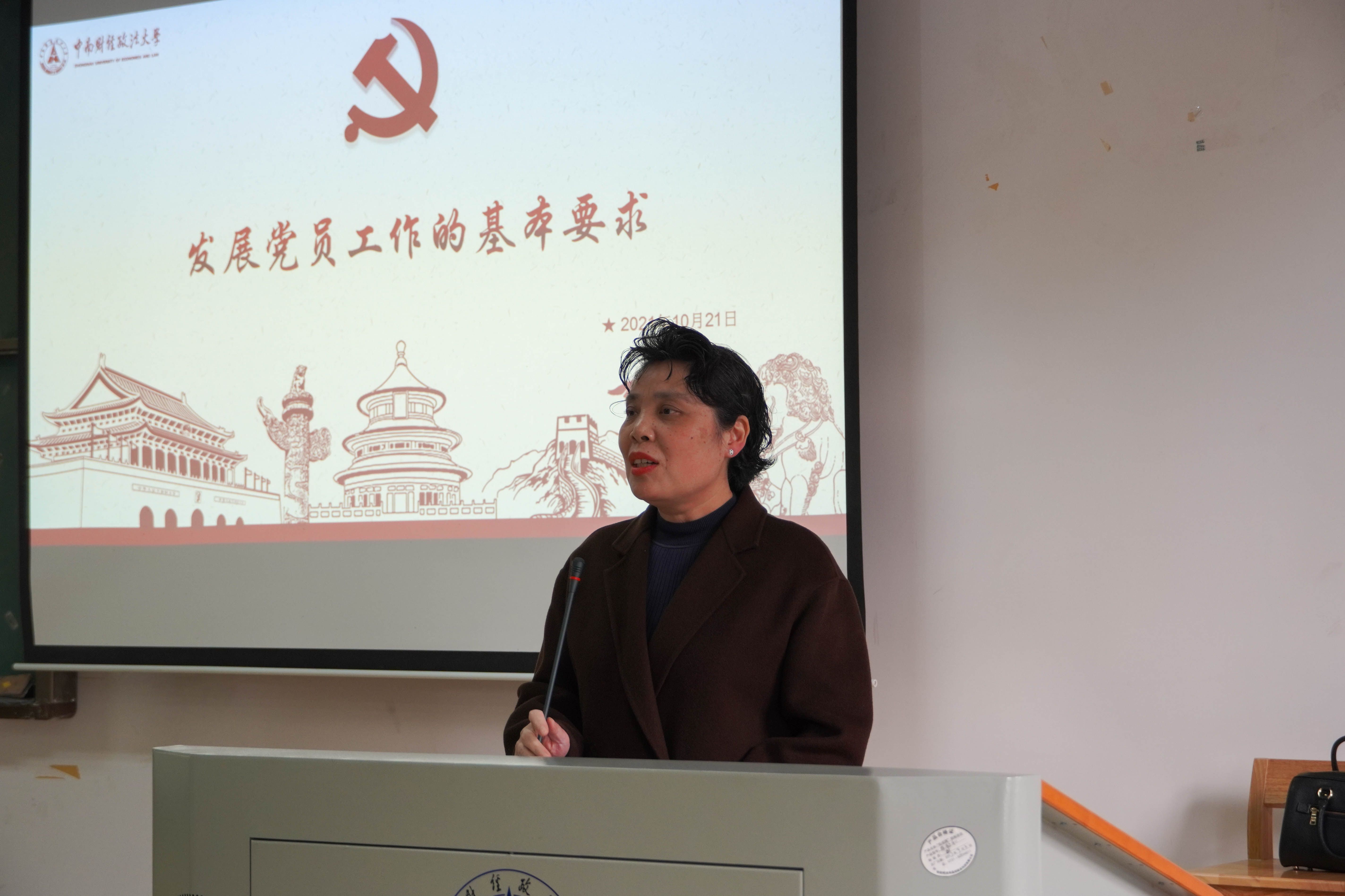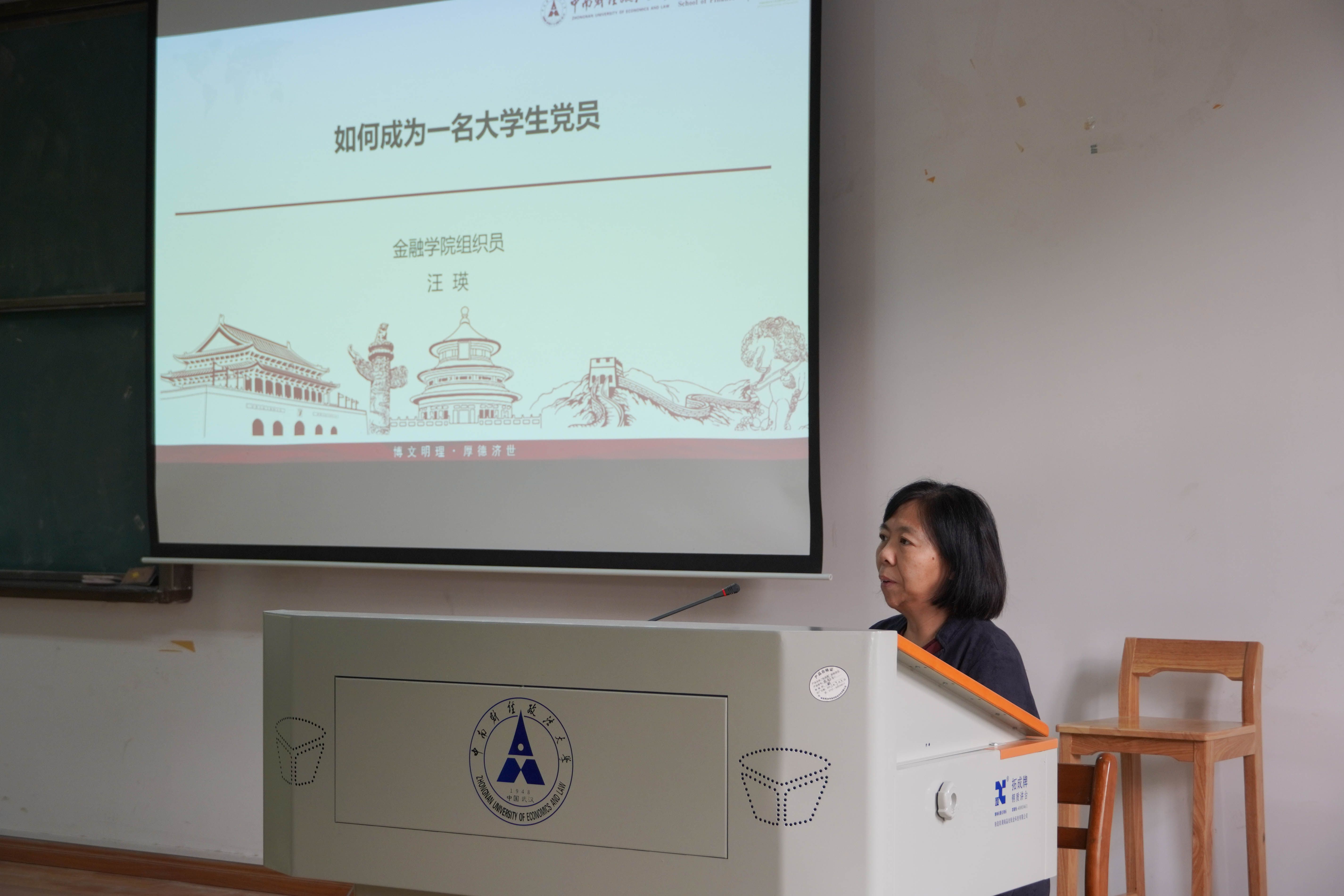 金融学院组织员汪瑛从如何成为一名大学生党员出发,向同学们介绍了党员发展工作内容和重要性,讲授了如何树立正确的入党动机,详细讲解了如何撰写高质量的入党申请书和思想汇报,并强调了要树立正确政治价值观,端正入党动机,提高党性修养,掌握丰富知识,用实际行动彰显青年学子的入党初心。