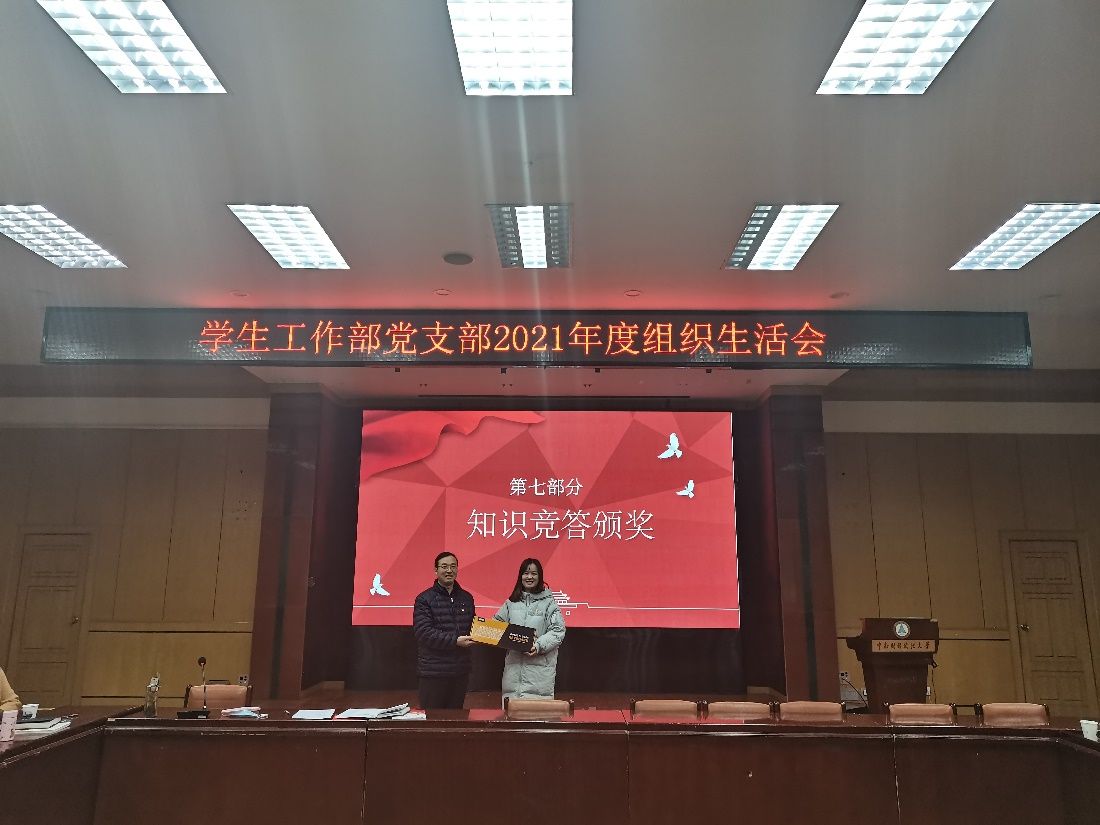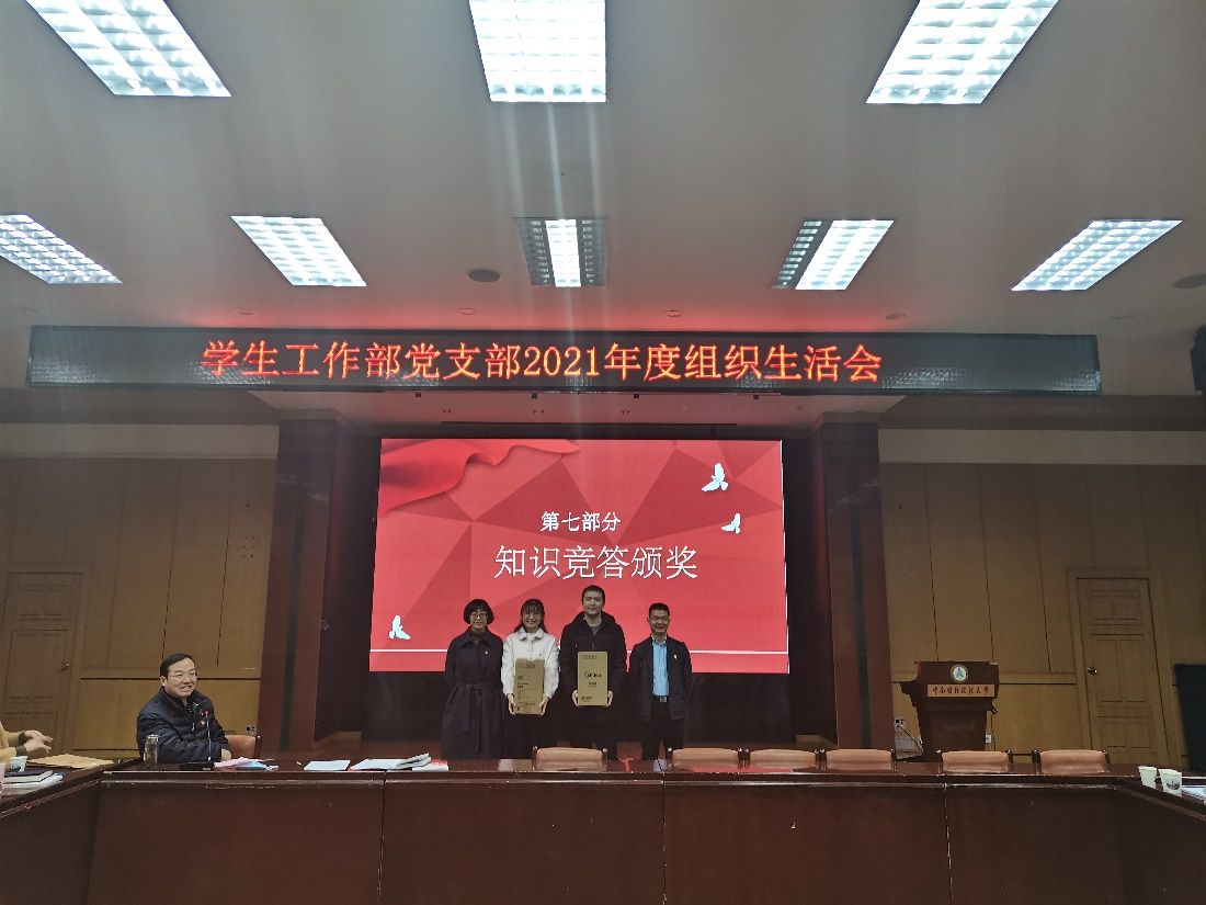 会上,学工部党支部为支部“党史知识和十九届六中全会精神竞答”活动获奖党员颁奖。