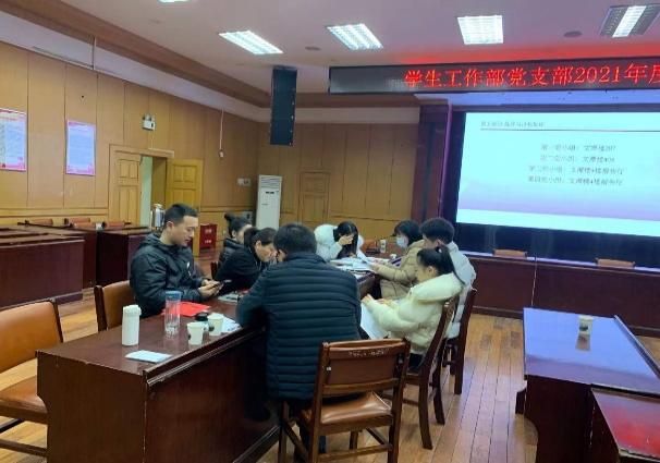 2022年1月6日上午,学工部党支部在文潭楼四楼报告厅组织召开了2021年度组织生活会。会议由支部书记余小朋主持。