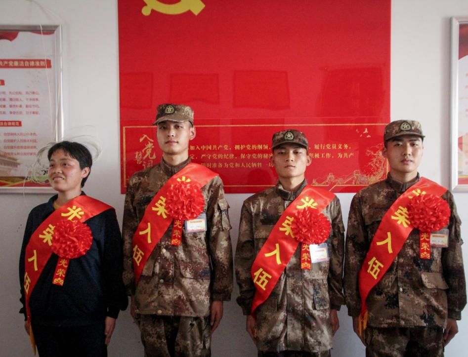 座谈会后,路庆伟上校、王进上校为“准新兵”佩戴“光荣入伍”的大红花与红肩带,覃红为“准新兵”分发5000元入伍奖励奖金,余小朋为“准新兵”赠送光荣入伍行李箱。