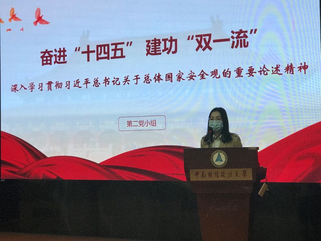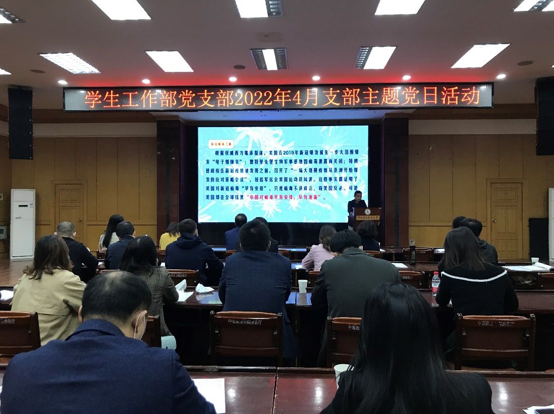 (通讯员 谢吉 摄影 祝颖)4月14日上午,党委学生工作部党支部围绕“奋进‘十四五’ 建功‘双一流’——深入学习贯彻习近平总书记关于总体国家安全观的重要论述精神”主题,在文潭四楼报告厅开展4月支部主题党日活动。支部第二党小组组长谢吉主持。