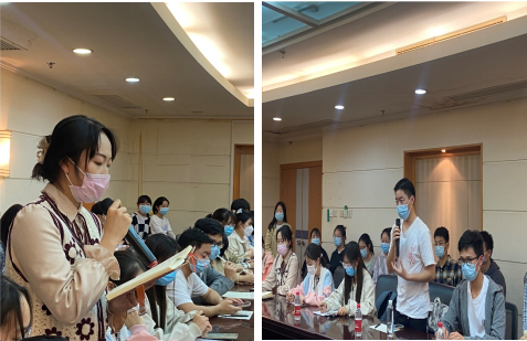 外国语言文学类学生代表提出希望能在大一增设更多专业课,如语音课、视听说、写作等,设置有声读书室,同时建议学院公众号集中推送重要赛事信息,避免信息分散等。商务英语+法学(辅修双学位)学生代表提出向商法班开放“模拟法庭”活动,建议多开展文体活动加强院内学生联系等。小语种专业学生代表咨询疫情下的对外交流项目安排,提出建议细分视听说课程,提供更多优质的实习实训机会等。