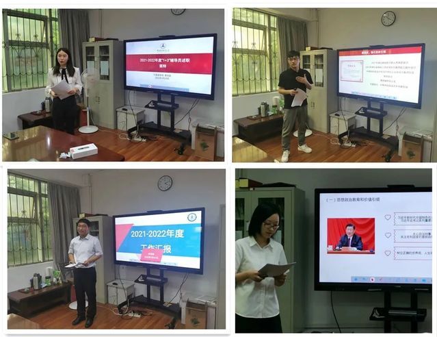 为加强管理,提升思想政治工作综合素养,学校将综合个人材料、述职答辩、实地走访等方式对“1+3”辅导员进行考核。5月31日下午,学校在文潭楼207会议室举行2021-2022学年“1+3”辅导员述职答辩会。人事部副部长潘嫄、党委学生工作部副部长葛明及相关工作人员出席。