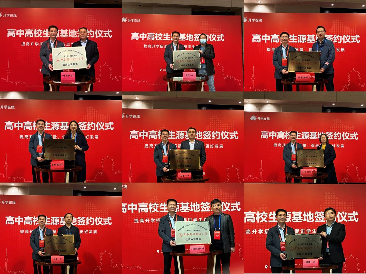 校党委学生工作部部长兼人民武装部部长余小朋,党委学生工作部副部长兼人民武装部副部长范献龙,党委学生工作部、人民武装部办公室主任左思在峰会现场先后为宜昌市夷陵中学、长沙县实验中学、公安一中、远安一中等28所高中进行优质生源基地授牌。