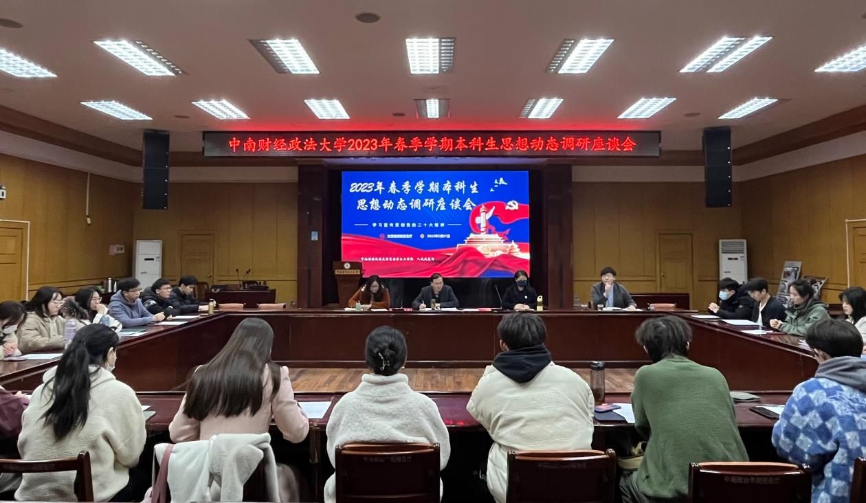 新闻网讯(通讯员 王安琪 陶静)2月21日下午,党委学生工作部在文潭楼四楼报告厅组织开展了2023年春季学期本科生思想动态调研座谈会。党委学生工作部、人民武装部部长余小朋、党委学生工作部副部长刘晓燕、党委学生工作部副部长石凌与各学院23名本科生代表面对面座谈,深入了解学生的所思所想,倾听学生对于学校发展建设的意见建议。