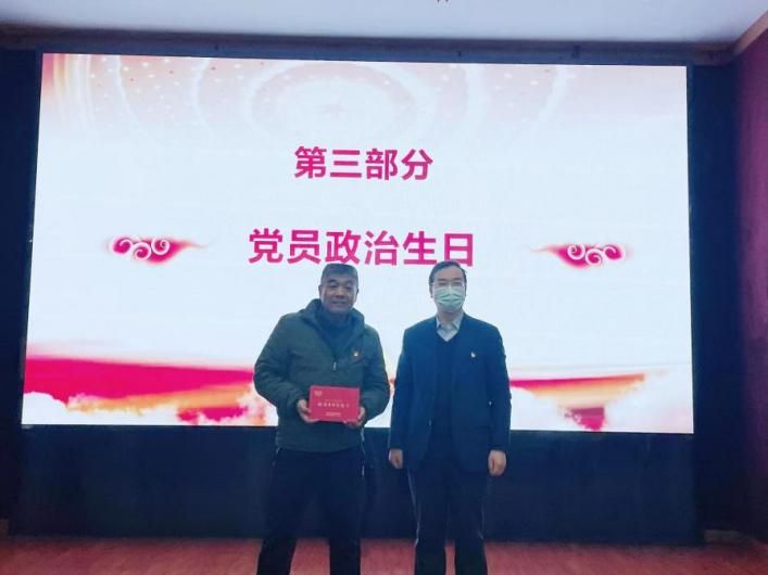 活动中,余小朋给许平同志送上政治生日祝福贺卡。