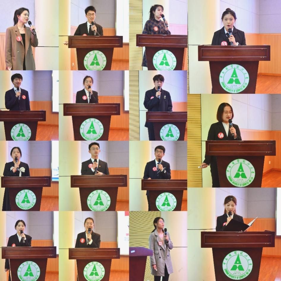 “班级六级通过率近90%,5人达到580分以上”“班级多次获得学校表彰,多名同学获得校一等奖学金”,来自不同学院的15位班级代表按照抽签顺序依次上台,通过文稿演示展示了班级在思想引领、学科成绩、科研成果等方面取得的累累硕果。