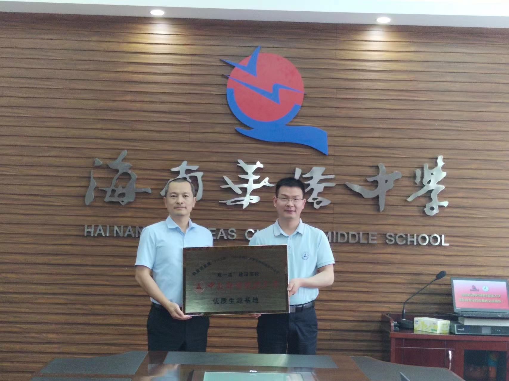 海南华侨中学副校长吴撼宇介绍了学校概况和办学特色和教学成绩,范献龙围绕学校的历史沿革、学科特色、海南华侨中学学子在中南大的学习生活等方面进行了重点介绍,并向海南华侨中学授予“优质生源基地”牌,希望双方能进一步加深高校高中的联系与合作。